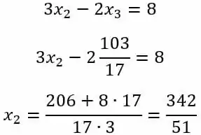 Agora, a partir da ultima linha é possível encontrar o valor da variável x3, para assim substitui-la na segunda linha e assim sucessivamente, sendo assim: