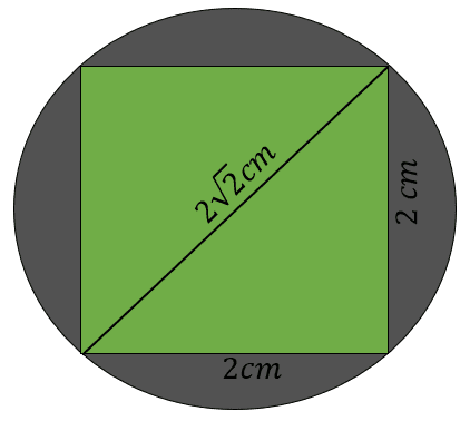 A área cinza é igual a área do círculo de diâmetro 2√2cm subtraída a área do quadrado de lado 2 cm.