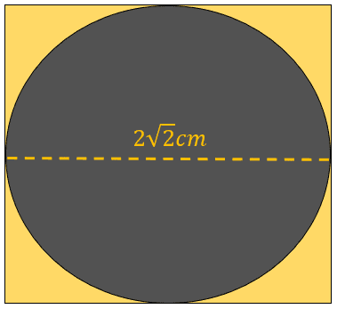 Vemos, a partir da imagem acima, que a área amarela é igual a área do quadrado de lado 2√2cm, menos a área da circulo.